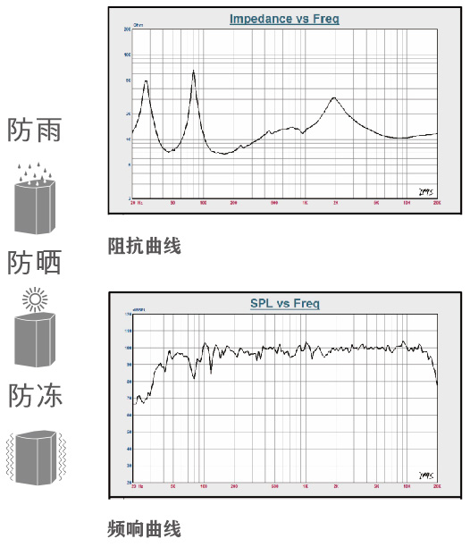● 主要用于戶外演出,戶外廣場音樂、噴泉系統(tǒng)、露天體育館、學校操場、游樂場、運動場等大型公共場所戶外場合用,可應對意外的降雨天氣和含水密度較高的潮濕環(huán)境的專業(yè)擴聲需求。